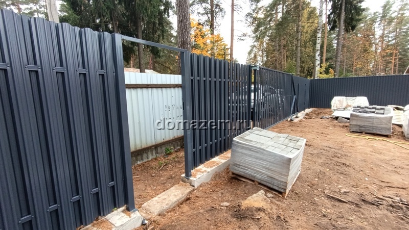 периметру, с откатными воротами и калиткой.