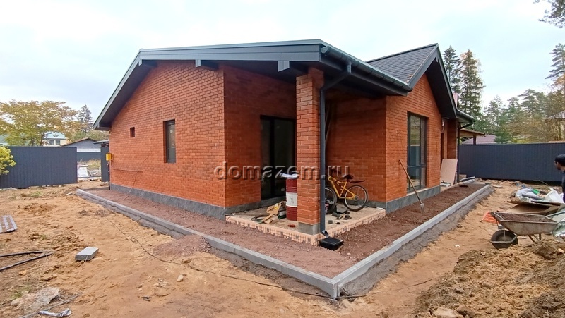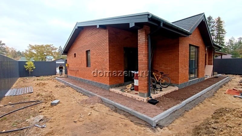 Коттедж построен на монолитной плите, из кирпича +